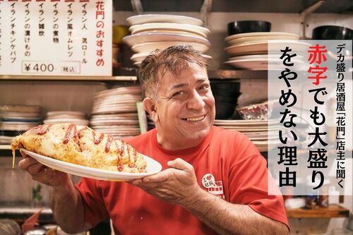 爆盛りの唐揚げや1kgのオムライスなど大皿で提供されるデカ盛り料理がすべて400円均一という驚きの居酒屋「花門(カモン)」。上板橋で30年、奥さんと二人三脚でこの店を営むイラン人の店主、コルドバッチェ・マンスールさんにデカ盛りを続けて良かったこと…