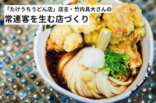 「とり天ぶっかけ」で知られる大阪の人気店「たけうちうどん店」店主の竹内具大さんに、常連客が生まれるお店づくりの工夫について伺いました。うどん一杯の満足を追求し、接客では必要以上に干渉しないちょうどいい距離感を意識しているといいます。