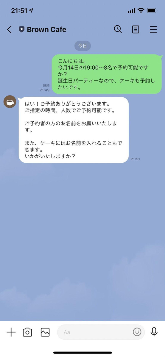お客さんからお店に連絡することもできるので、電話に出られないときの問い合わせ、予約対応にも活用できます。