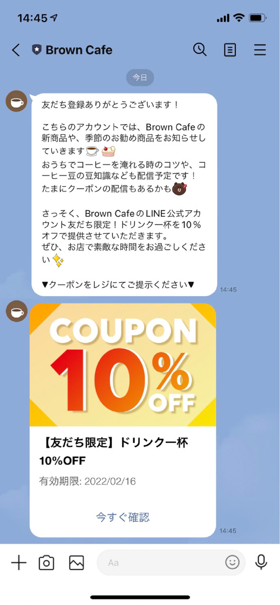 お店で使用できるクーポンを、メッセージなどで手軽に配信することができます。