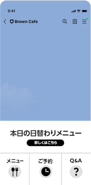 リッチメニューとは、LINE公式アカウントのトーク画面の下に大きく表示されるメニューのこと。複数の分割フォーマットが用意されていて、個別にリンク先が設定できます。お店のWebサイトや予約フォーム、クーポン、ショップカードなどを設定することで、お客さんがトーク画面を訪れた際にいつでも必要な情報にアクセスできるようになります。