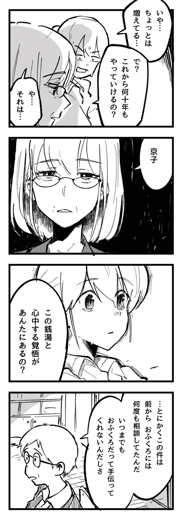 存続の危機にさらされる億万乃湯。叔父が勝つか京子が勝つか…乞うご期待。
